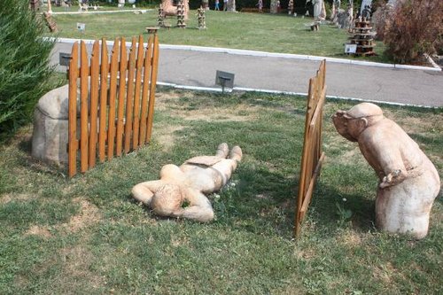 ..— ой, смотри домик «пана головы», как интересно…а ещё глянь на лавочке бутылки «Березовой на бруньках» выложили…