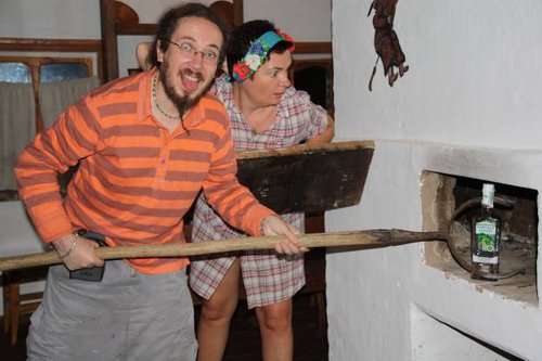 В корчме при отеле меню, как таковое, отсутствует вообще, поэтому процесс выбора блюд проходит в обоюдной оживленной беседе. Хотя готовят вкусно, выбор продуктов большой, ну а так как блюда по ассортименту сельские и простые, то, может, так и надо. Вы почти как у себя на кухне заказываете, это мне пожарьте, сюда чесночок, а сюда перчик, а вот этого не надо, ну и сальца сюда добавьте. В общем, наверное, меню и лишние. Отель выдерживает свой стиль этно-деревни. Поддерживают его и официантка, принеся блюда, руки она вытирая себе о поясницу, и белая вышыванка по бокам сзади была уже аж черная.