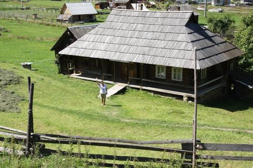Бросив машину в тенечке, мы стали пробираться по огородам к вершине ближайшей горы. Дороги, как таковой, в этих местах нет вообще, да впрочем и тропинок тоже, гора четко поделена заборами на участки, и только в некоторых местах к заборам как бы приделаны ступеньки, для коров не перебраться, ну а нам в самый раз. Так от забора к забору мы и выбрались уже слегка отчаявшись к музею Плитки–Горыцвит.