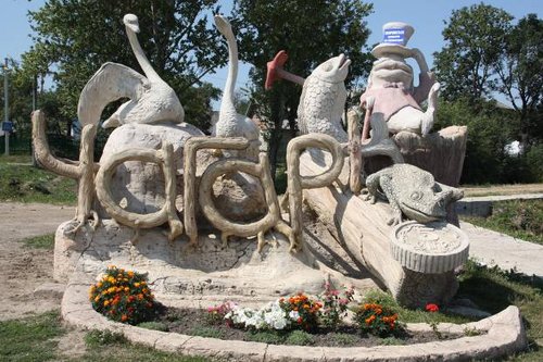 По пути проехали село Чагари, первые скульптурные композиции проскочили, просто потому что не сразу дошло, то что увидели. Яркие интересные и необычные работы стоят в этом небольшом селе ещё в нескольких местах. Остановились на фото уже на выезде из села. Забавный и душевный архитектурный знак. Молодцы! Очень порадовало это село и люди, его так любящие, что превратили его в музей под открытым небом, музей забавных скульптур.