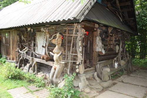 Ну, а мы продолжили свой путь по музеям Карпат, их здесь довольно много, часто это как бы небольшие домашние экспозиции, которые размещаются у кого-то дома. Почти все они бесплатные, просто люди считают своим долгом сберечь и сохранить то что есть интересного и необычного в их крае. Так мы попали в забавный музей Лесной скульптуры Игоря Фартушного (это Яблунив), где кореньям и сучьям заботливо отобранным на лесных опушках мастер, чуть их подправив, придал вид и форму, странных и необычных созданий.