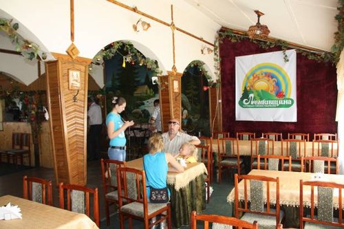 Стало интересно ознакомится с кухней этого карпатского народа, поэтому кафе специализирующееся на лемковской кухне и стало нашим основным пунктом посещения. Но нас ждало почти полное разочарование. Кроме десятка фотографий лемков на стенах в коридоре, больше это кафе ничего интересного предложить не смогло. Скромная и даже немного убогая обстановка, пятна от жвачек, которые густо въелись в ковровое покрытие между столами, стулья из СССР и чахлое меню с очень скромным ассортиментом стандартных блюд.