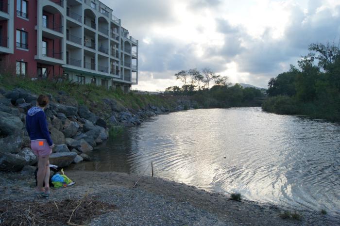 Обустроившись на песке со стороны реки, я впервые в Болгарии закинул удочку. Вода в реке по сравнению с морем была очень холодной. Около часа там просидели, так ни разу не клюнуло. «Давление», — подумал я и собрал снасти. Прогулялись по косе.