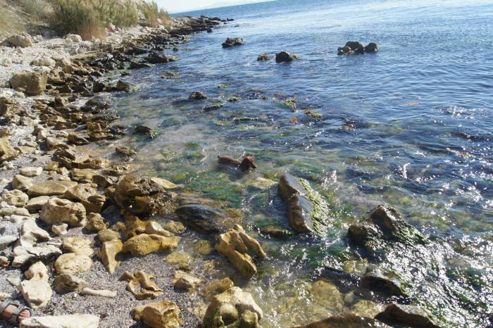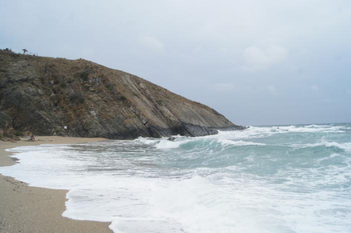 Вернувшись на маршрут, мы встретили ещё 2 человек. Они оказались змееловами, но при нас так никого и не поймали. Медленно, но верно, мы пришли к заливу. Говорят, что в хорошую погоду здесь можно понырять с маской и найти фракийские монеты, но погода была прохладной и, даже слегка взмокнув от хождения, желания искупаться не появилось.