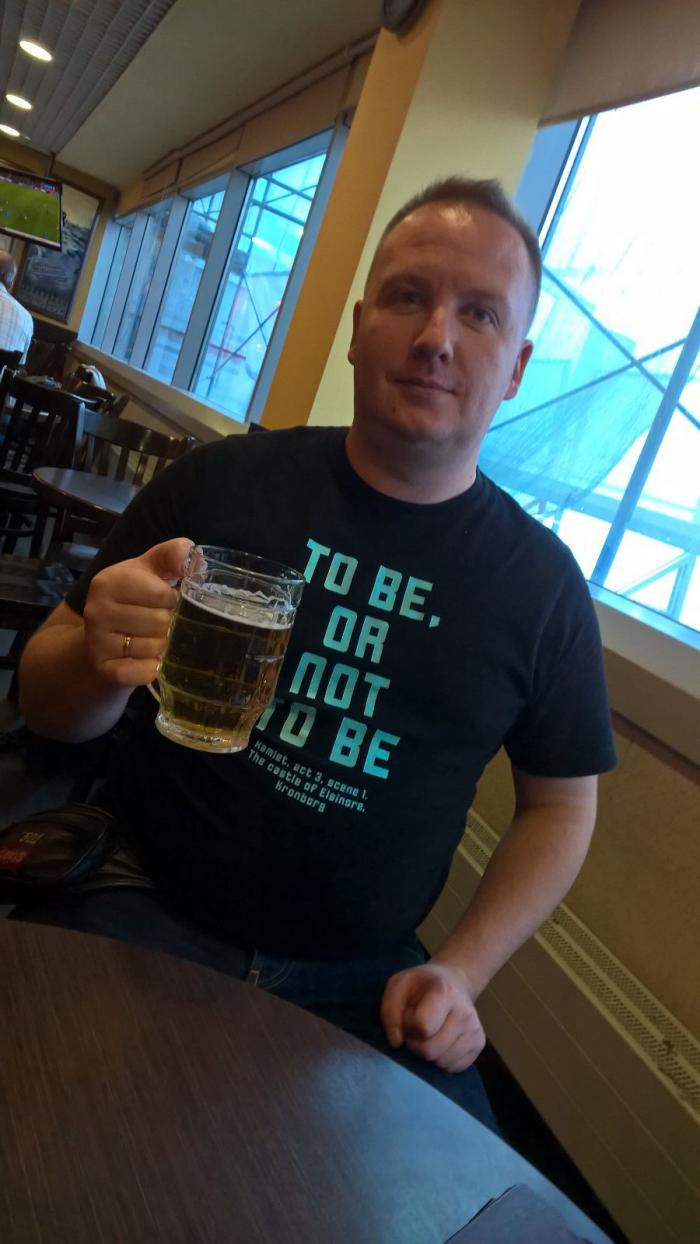 Проснулись в 5 утра и, подкрепившись лёгким завтраком, мы отправились к метро. В этот раз добрались до аэроэкспресса с опережением графика (к тому же билеты заранее купили через интернет). В аэропорту Домодедово мы были в 7:47. На удивление, на нашей стойке регистрации не было очереди, вообще, никакой. Да и, в целом, все пункты: регистрация, паспортный контроль, досмотр, мы прошли очень быстро, и до посадки нам оставалось чуть более часа. Сели в любимый барчик (Irish Pub). Взяли по кружке дорогущего аэропортовского пива, сделали пару фоток, которые сразу же были опубликованы в Fb и отправлены коллегам с пожеланиями «Отличного понедельника». Кстати, мы потом только подумали о том, что всего через несколько часов за руль.
