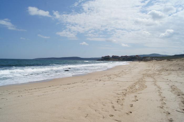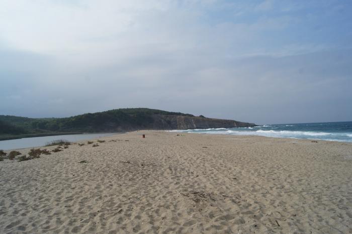 В Синеморец мы вернулись, чтобы прогуляться по косе. В устье реки Велека находится один из самых экзотических и красивых пляжей Болгарии. Одну сторону пляжа омывает река, другую море — купаться можно по обе стороны. Общая протяженность косы около 500 метров.