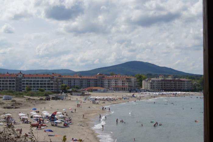 Мы пошли на тот же пляж, где были в первый день. Не могу сказать, что народу много, но прилично. Такое ощущение, что местные Болгары, тоже ждали солнышка и, побросав свои рабочие места, побежали купаться и загорать.