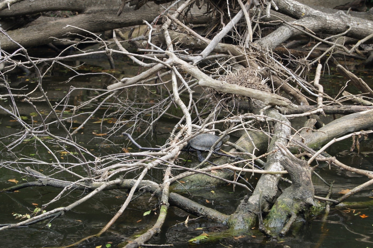 Очень пейзажные места: коряги, старые поваленные деревья, много зелени. Видели черепашек, цаплю и красивую цветную птичку (если кто знает, кто это, напишите в комментариях).