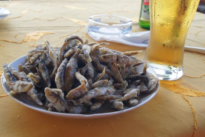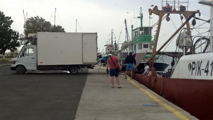 Я понаблюдал за технологическим процессом транспортировки рыбы с корабля в грузовичок. Это была килька или, как она звучит в кафешках, цаца — это подсоленная жареная килька, одно из самых популярных блюд.