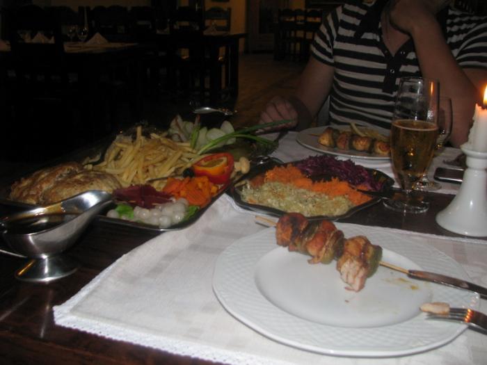 Быстро оценив ситуацию поняли, что просидеть в машине можно долго и решили прорываться в отель. В номер зашли насквозь промокшими. Про номер скажу только то что он офигенный для придорожного отеля за свои деньги. Гулять по понятным причинам мы не пошли и решили поужинать и спать…Отдельно про ужин…Мы такого не ожидали))) На ломаном английском мы объяснили что нам нужно мясо и пиво, официант нам посоветовал блюдо за 70 злотых. Конечно дороговато но мы заказали, к тому же он сказал что его хватит на двоих и в итоге получили такое….