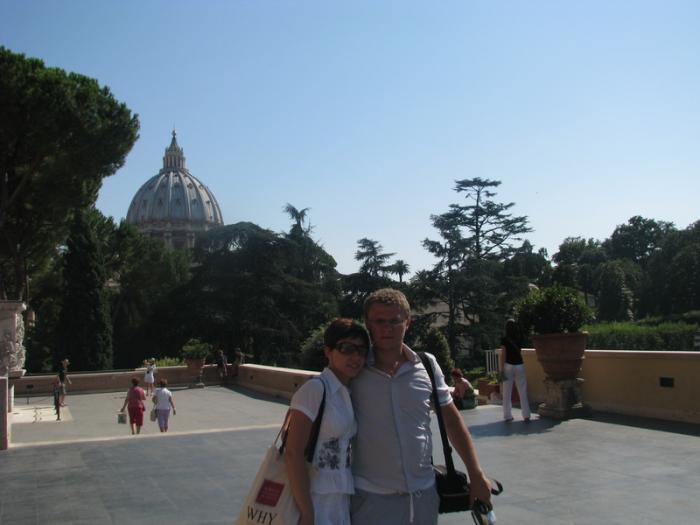 3,5 часовая прогулка по историческому центру Рима прошла практически незаметно и мы в принципе даже не устали. Пообедав в ресторане за 40 Евро Пастой, салатами и соками (хотели пиццу но Елена гид сказала, что у итальянцев не принято днём есть пиццу – они её едят вечером, а днём пасту), мы поймали такси и за 7 Евро доехали до Ватикана…