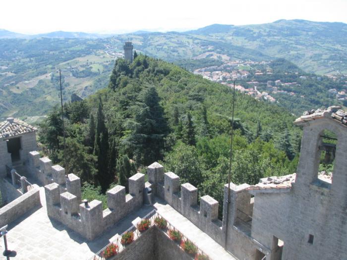 На этот день мы запланировали поездку в Сан Марино. Решили встать и не рано и не поздно…в общем в 9:05 мы выехали и в 9:50 были на парковке в Сан Марино. Дорога просто великолепная в смысле пейзажей, ну и качество естественно на высшем уровне. От Римини до Сан Марино нет платных участков. Припарковавшись, необходимо сразу же заплатить в автомате за парковку. Сумма зависит от того сколько планируете простоять. Я заплатил что то около 5 Евро и этого мне хватило до конца дня. Чек из автомата я положил под лобовое стекло и мы пошли на встречу красоте…