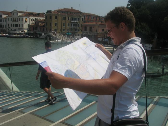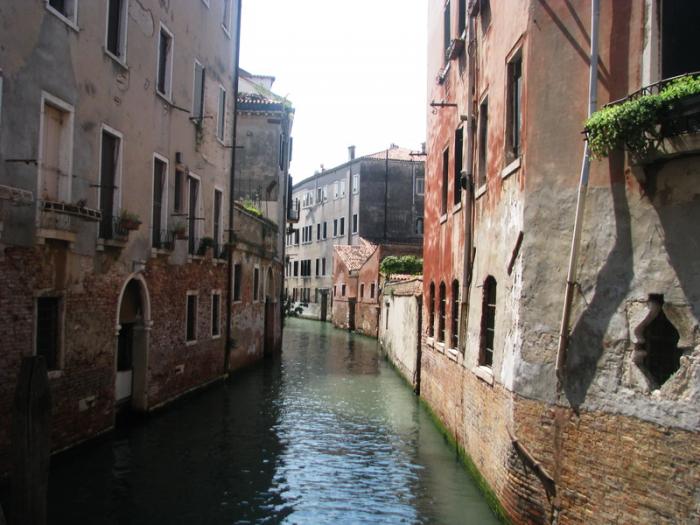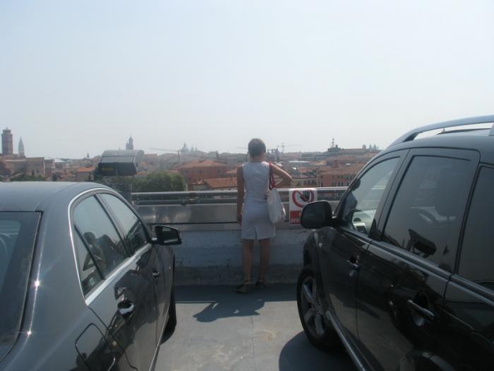 Не кривя душой можно сказать, что этого дня мы ждали с особым трепетом, ведь побывать в Венеции было нашей давней мечтой, которая теперь была так близко. Из отеля мы выехали в 8:30 и уже в 12:00 парковались на 10-м этаже многоуровневой парковки. Прошли 270 км и заплатили 16,10 Евро за дорогу. Парковка в Венеции не из дешёвых и стоит 24 Евро. При въезде надо внимательно слушать, что вам говорят, а говорят они куда вам парковаться, на какой этаж. Мы подумали, что уж лучше переплатить, чем парковаться в порту пусть и за меньшие деньги… На первом этаже парковки сразу купили карту Венеции и направились через город и многочисленные музеи к главной намеченной точке, площади Сан Марко. Надо сказать, что когда мы ехали в отпуск, нам многие говорили, что мы будем ожидать какой-то сказки, а прогулявшись скажем: «Ну да…красиво в общем, но не более». Нет, мы так не сказали. Конечно сильно портит впечатление сплошной рынок…он везде и продаётся на нём всё! Плюс обветшалые дома и многолюдность центральных улиц, но если забыть про всё это и задуматься на секунду, что ты находишься в городе на воде, легендарной Венеции, свернуть на какую-нибудь тихую, нетуристическую улицу, то становится безумно интересно…