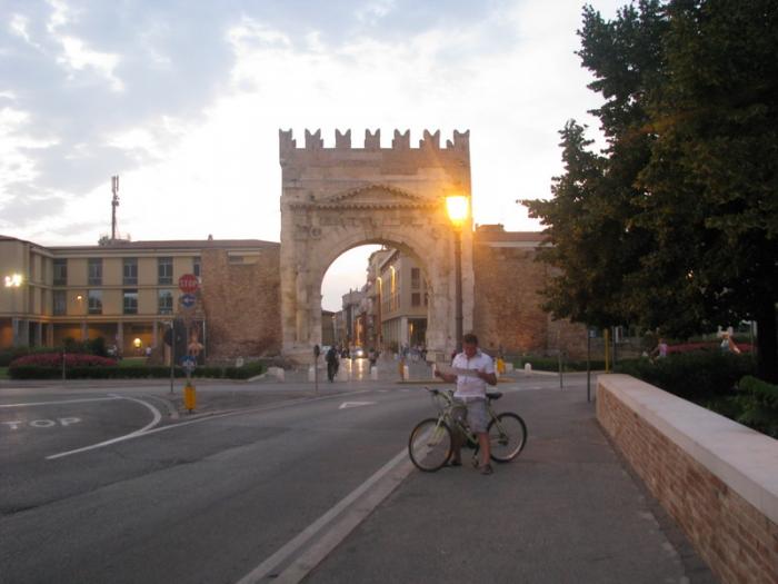 Проведя весь этот день на пляже к вечеру мы решили, что сегодня будет велосипедная прогулка…Велосипеды на прокат в Римини встречаются повсеместно и стоят 4 Евро/час за обычный велик и 7Евро/час за двухместный практически автомобиль, который мы сначала и взяли, но через пол часа пересели на обычные велика, не оценив достоинств двухместного…