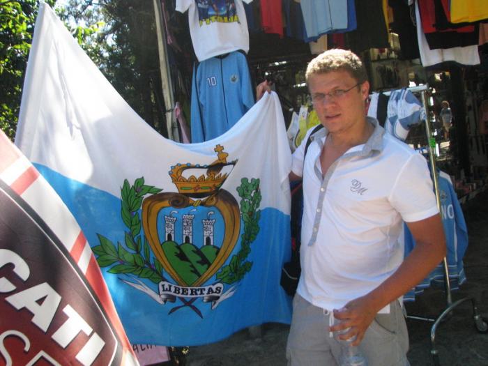 Хотели найти майку сборной Сан Марино по футболу, но нашли только флаг…Интересно его где-нибудь кроме Сан Марино можно купить?..