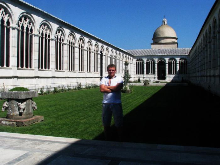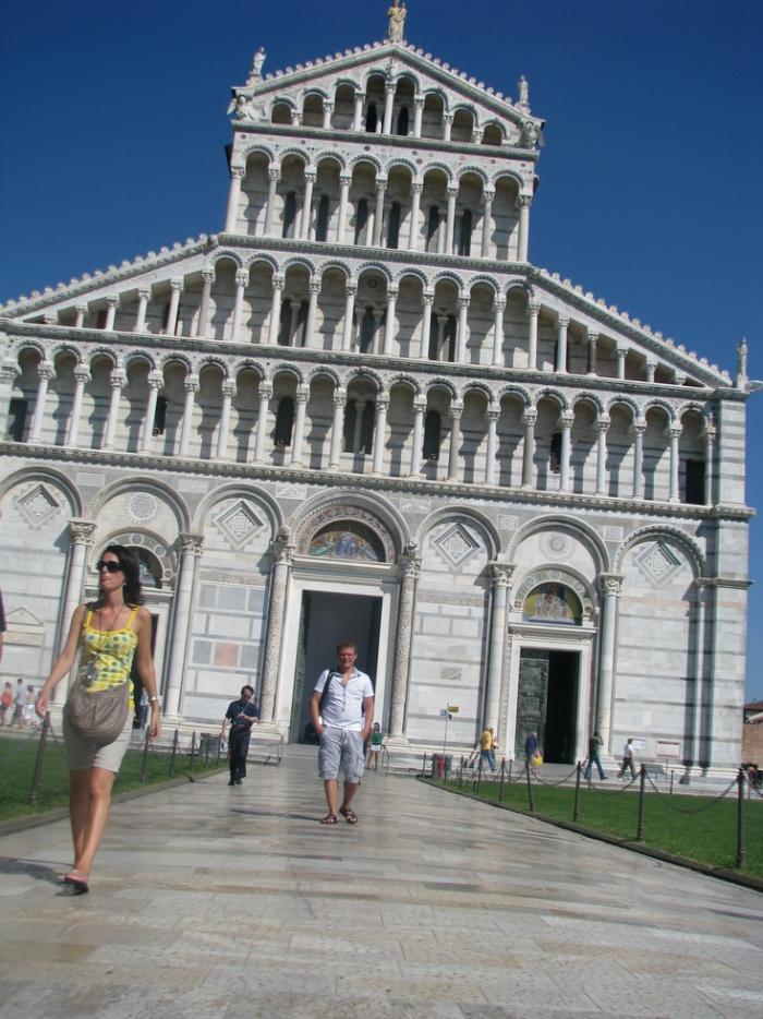 Выйдя из машины мы поняли, что хрен знает куда идти)) И пошли за людьми из соседнего автомобиля…уж очень уверенно они шли)) Сразу бросился в глаза сплошной рынок на улицах, где чернокожие французы продавали ширпотреб…например сумки «известных подвальных дизайнеров» по 50 Евро за штуку. Честно говоря такое соседство немного напрягало, пока мы не зашли на территорию музея…Это очень красиво….а внутри всё тот же рынок) только продавцы более разнообразные в смысле национальности…есть даже русские. Немного посмотрев с открытым ртом на всю красоту, мы отправились покупать билеты в музеи…на двоих получилось 50 Евро вместе с билетами на пизанскую башню, на которую поднимаются небольшими группами толи раз в час толи раз в полчаса, толи раз в час (на билете было написано наше время). Кстати с сумками на Пизанскую башню подниматься нельзя. Их сдают в камеру хранения ровно за 10 минут до времени подъёма на пизанскую башню… А теперь немного фоток…