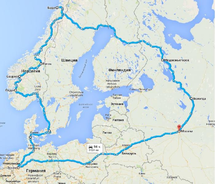 Финляндия — Швеция — Норвегия — Дания — Германия — Польша — Белоруссия