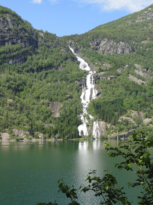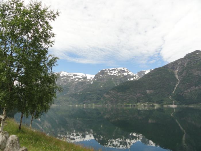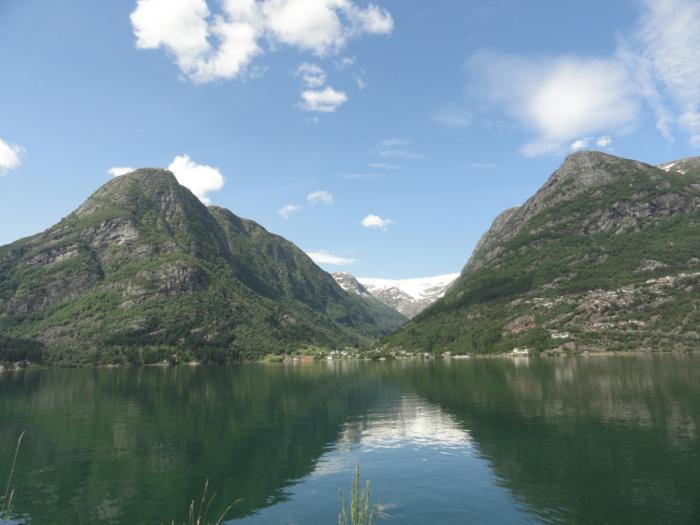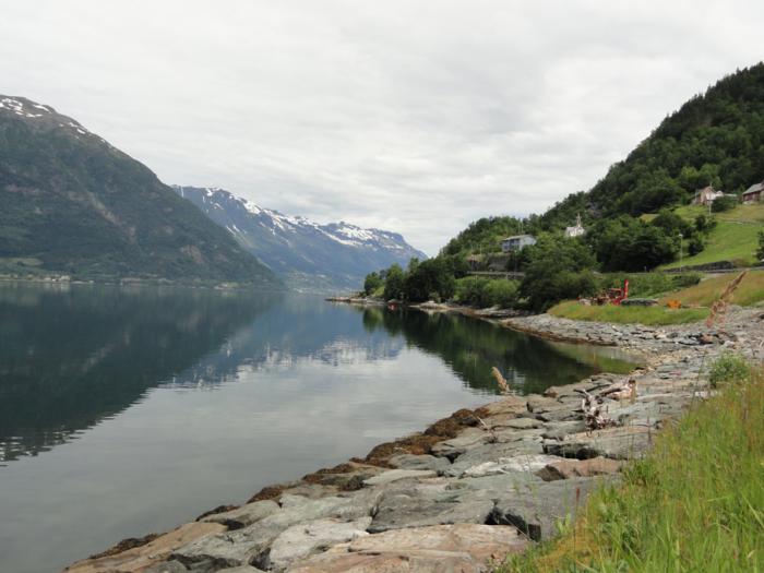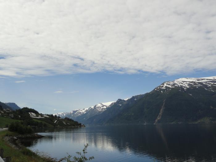 Едем по берегу безнадежно живописного Сёр-фьорда. Эта часть 13-й дороги (от паромной переправы до пересечения с Е134) тоже национальная туристическая дорога – сразу понятно почему.