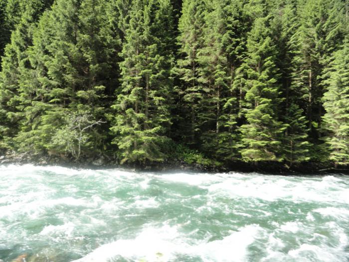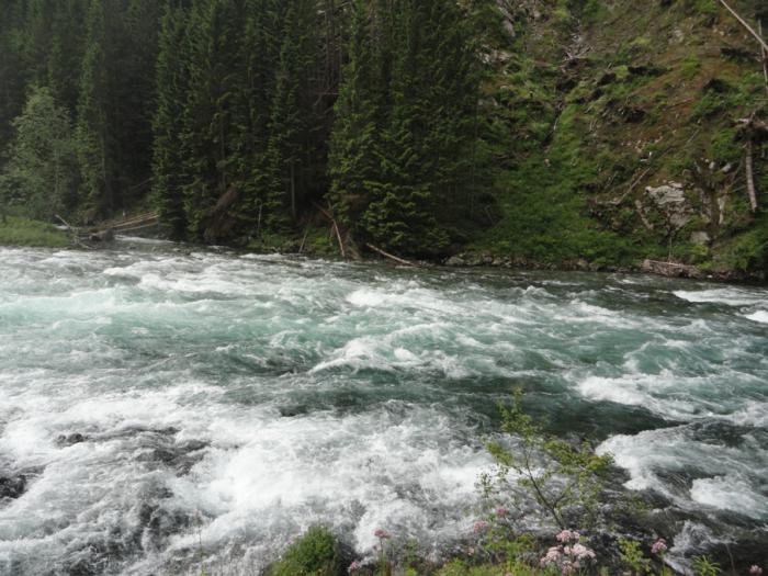 Природа за окном заметно меняется. Особенно это заметно по рекам: по ту сторону гор вода в них была идеально чистая и прозрачная, сине-зеленая; здесь же она тоже чистая, но желто-коричневого цвета (видимо, много торфяных болот).