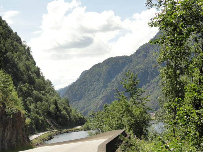 Осло все ближе, по карте вроде бы уже и гор особых не должно быть, но дорога усиленно петляет по долинам, так что иногда даже непонятно, куда она вообще ведет. Поток по норвежским меркам довольно большой, особо не разгонишься.