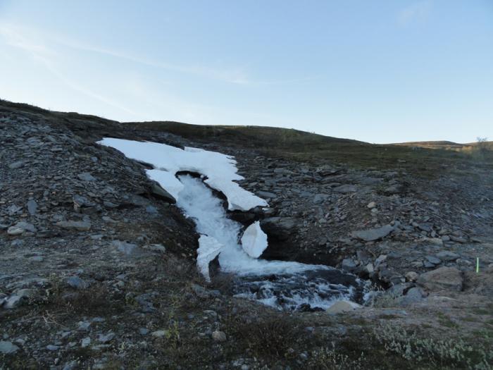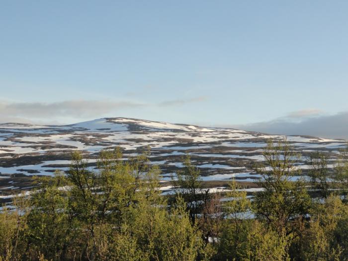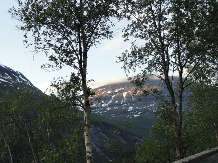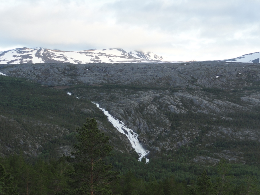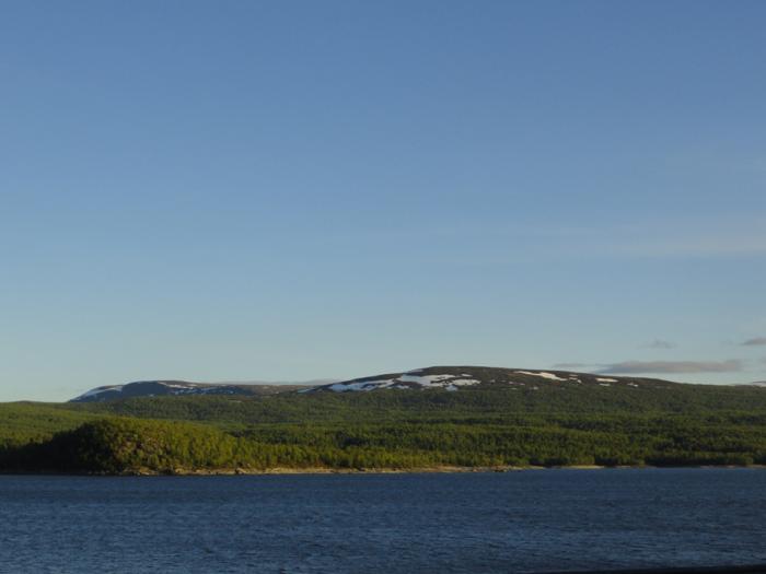 Местность вокруг повышается, становится все более горной. Где-то здесь проходит Полярный круг. Не знаем как в других местах, а на этой дороге шведы его поленились обозначить. Зато на горах появились островки снега.