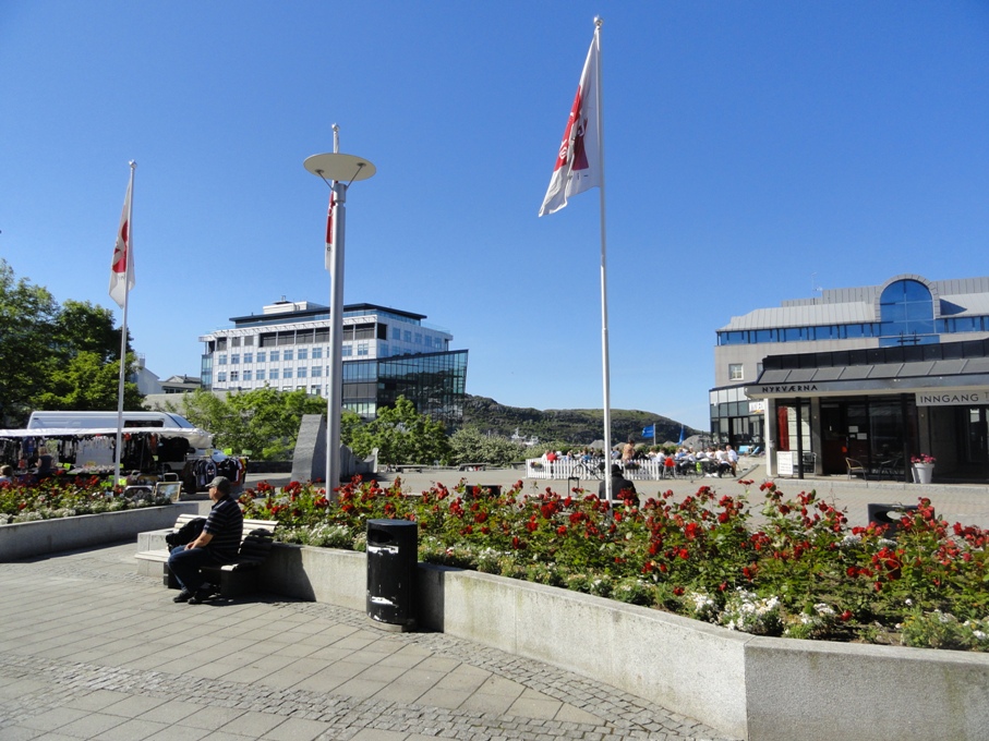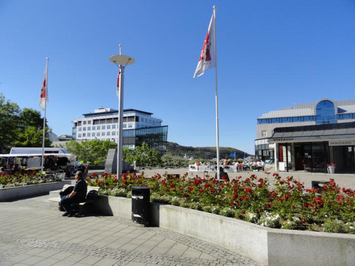 Утром пришлось погулять по городу. Именно пришлось, хотя мы и так были бы не против. Этот кемпинг, наверное, единственный в Норвегии, где не принимают банковские карточки. Об этом предупреждали еще при заказе (сайта и электронной почты у них тоже нет, так что общаться пришлось по телефону). Идем в банк снимать наличные, по пути изучаем город.
