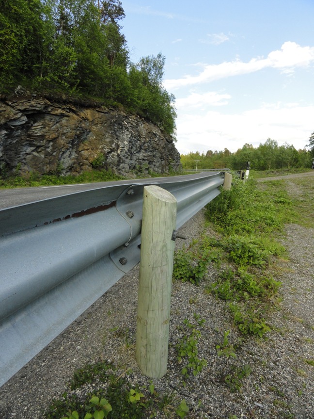 Иллюстрация на тему безопасности норвежских дорог. Стандартный отбойник на деревянных (!) столбиках. Не очень сильный удар выдержит. Но если вздумал полихачить — туда тебе и дорога. Причем на наиболее вероятной траектории вылета при превышении скорости в отбойнике зачастую сделан разрыв. Видимо, чтобы не ремонтировать ограждение после каждого идиота...