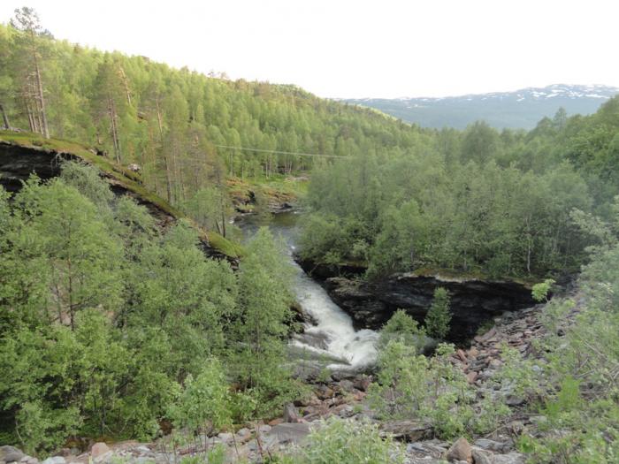 Снова Е6. Широкая, ровная; нетипичное для Норвегии ограничение скорости 90 км/ч вместо 80 – красота! Но как только пошел подъем на плато Салтфьеллет (Saltfjellet), лафа кончилась. Дорога резко сузилась, пошли крутые повороты, пропала разметка. При этом поток транспорта достаточно большой, вылетающие из-за поворота фуры несколько нервируют. А уж как они на скорости разъезжаются – со стороны смотреть страшно. При этом никаких аварий, уровень подготовки местных водителей на высоте.