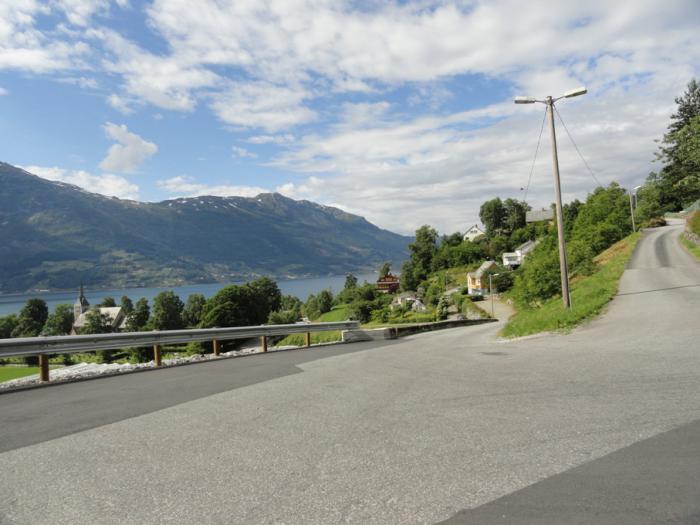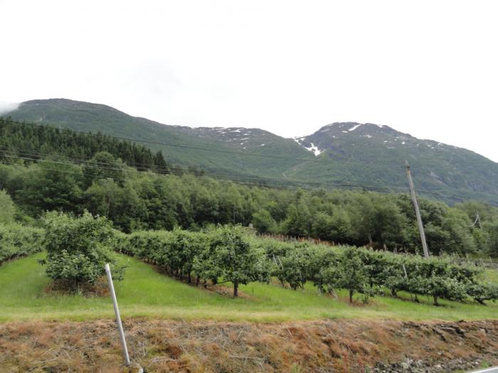 Из-за неточности в карте (и желания подстраховаться – а то проедешь въезд, а он был единственным) свернули раньше, чем нужно, в итоге познакомились с жизнью местных норгов ближе, чем планировали. Дорожка проходит прямо по задворкам усадеб, мимо садов – все на виду. Узкая, правда, — шириной всего в одну машину – и подъемы вертикальные, но для нас это уже мелочи. Даже с тракторами на такой дороге уже разъезжаемся без проблем )))