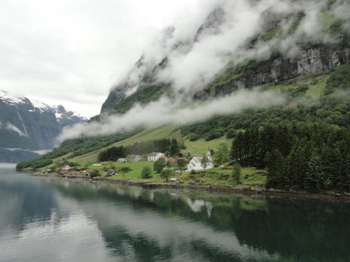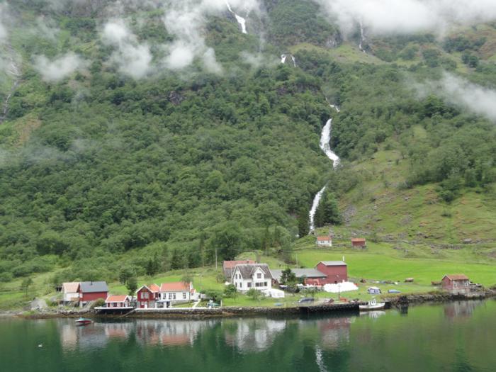 Деревушка Нэрёй (Nærøy), давшая название всему фьорду. Здесь солнце, конечно, только по большим праздникам, но мы очень понимаем людей, которые тут живут…