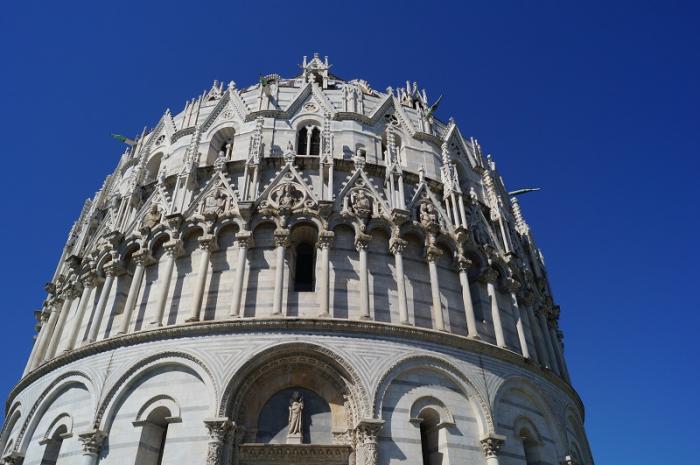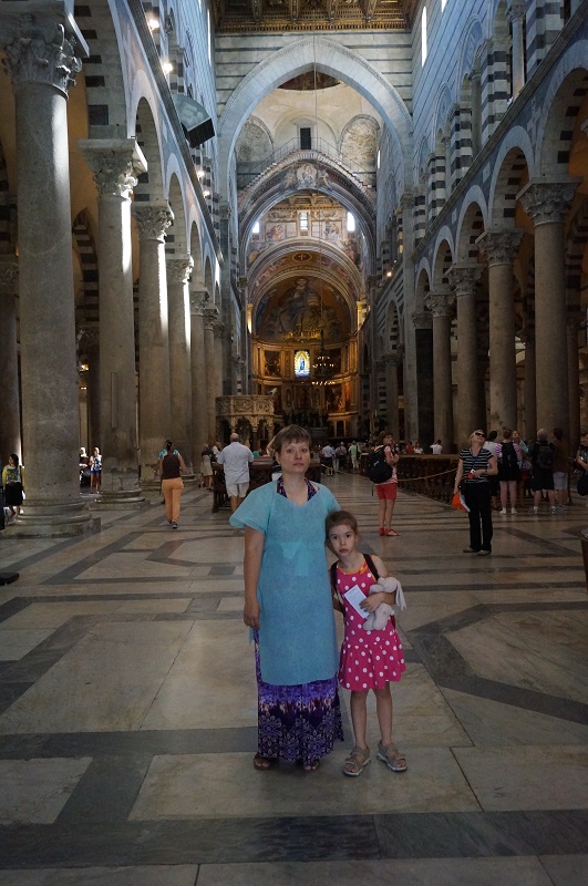 В баптистерии обалденная акустика. В центре зала внизу стоял мужчина и пел — один, а нам казалось, что поет огромный многоголосый хор. Классно — это надо слышать!!! Вот и не знаешь, что тебе больше понравится — известная достопримечательность или что-то другое. А еще мы прогулялись по улочкам Пизы.