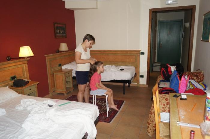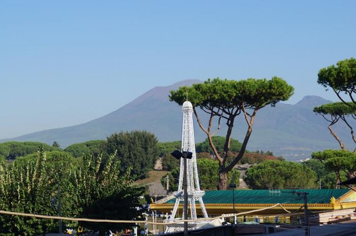 В нашем кемпинге можно было стоять до 14-00 и нам пора возвращаться — до свидания, Пиза. Сегодня нам еще надо проехать около 600 км до Помпеи. Как обычно (уже привыкли!!!) по отличной платной дороге за 33,50 евро к 20-00 мы были в Помпеях. Немного заблудившись в куче колец на узких улочках, мы нашли наш отель «Катарина». Отель в 100 метрах от входа в старый город с парковкой во внутреннем дворике — очень удобно. Персонал отеля не говорит ни на каком языке кроме итальянского, но у нас была распечатка с букина на итальянском языке, поэтому проблем с заселением не возникло. Трехместный достаточно большой номер со всеми удобствами, с завтраком, с WiFi, с парковкой стоил 69 евро за ночь.