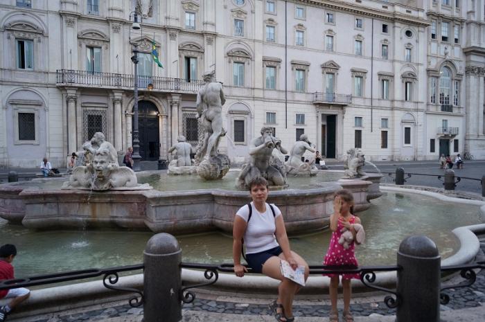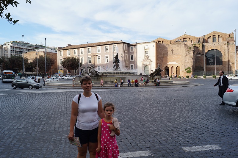 Находились по жаре (было +36 градусов) и очень устали, спасала вода из уличных фонтанчиков — их в старой части Рима очень много, но хотелось полежать и поесть. Советую всем в больших городах селится поближе к станциям метро. Быстро, удобно, комфортно. Можно позволить себе на обед вернуться в отель и отдохнуть, что мы и сделали.