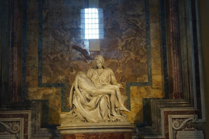 А вот и знаменитая скульптура Микеланджело «Пьета». Как такое можно создать из камня.