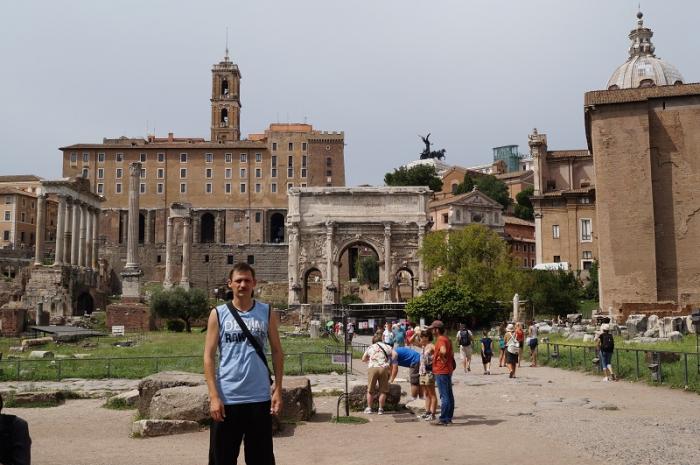 По пути на Римский форум. Вон он Колизей, виднеется на горизонте. Но отложим «сладенькое» на потом и начнем с форума.