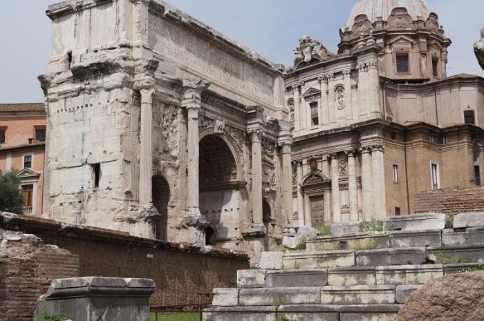 Перед Колизеем находится самая большая арка — арка Константина. Очень красивые барельефы и скульптуры на арке.