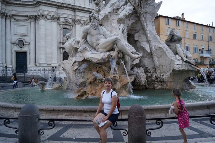 Далее двигаемся на народную площадь — площадь Навона. Эта площадь нам очень понравилась. На ней очень много художников, кафе и три красивых фонтана, а самое главное — какая-то особая теплая атмосфера. Так и хочется сидеть здесь и сидеть.