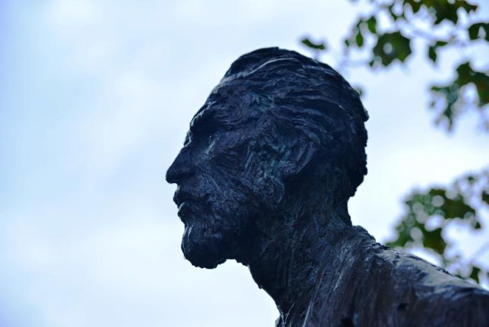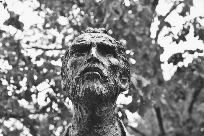 Первое, что встречает посетителя при входе в монастырь, — это скульптурное изображение художника с охапкой подсолнухов: