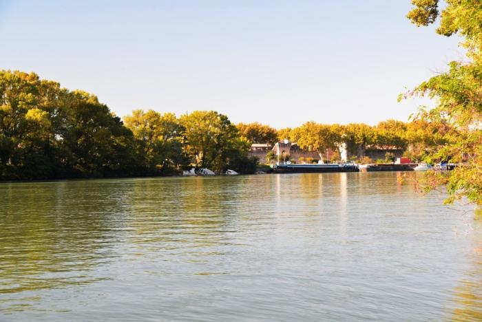 Надо отметить, что координаты этого отеля я уточнила заранее — и как никогда более тщательно. Переехав через мост напротив Папского дворца, оказались мы на зеленом и незастроенном острове посреди реки Роны, немногочисленная публика вокруг бегает, с собачками прогуливается.