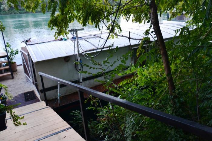 Бот на берегу Роны — самый экстремальный из всех наших ночлегов, пожалуй. Кстати говоря, такого рода плавучие мини-гостиницы нам часто встречались при бронировании Нидерландов, но там, собственно, и множество жилых домов такие. В эту французскую поездку ночлег на боте встречался в Сен-Тропе еще.