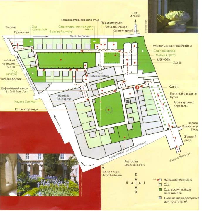 «В 1305-1376 гг. правый берег Роны, для которого была характерна более сельская местность, стал местом строительства резиденций для отдыха приближенных к епископу сановников. В частности, здесь находилось крупное имение папы Климента VI. В середине XIV века 12 кардиналов располагали владениями с садами и огородами на правом берегу реки. Среди них выделяется поместье кардинала Обера, разместившееся на склоне горы Андаон. Посвященный в папы под именем Иннокентия VI, в 1356 г. он основал картезианский монастырь Валь-де-Бенедиктин, примыкающий к его дворцу. Сегодня он открыт для посещения туристов».