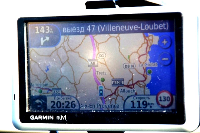 Вот и Экс остался позади. Теперь мы в ускоренном темпе пролетали по трассе те самые места вдоль побережья, вдоль которых двигались всю предыдущую неделю. Вот и Ла-Сиота на навигаторе – там мы гуляли ровно неделю назад, в прошлую субботу…