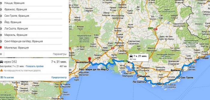во время которых увидели такие французские города и городки: Ницца, Биот, Ванс, Эз, Антиб, Фрежюс, Сен-Тропе, Гримо, Порт-Гримо, Йер, Тулон, Ла Сиота, Кассис, Камарг, Сен-Мари-де-ла-Мер, Эг-Морт, Монпелье, Арль, Сен-Реми-де-Прованс, Ле-Бо-де-Прованс, Тараскон, Бокер, Авиньон, Вильнёв-лез-Авиньон, Пон-дю-Гар, Оранж, Горд, Бори, Менерб, Бонньё, Лакост, Кавайон, Иль-де-Сорг, Фонтен-де-Воклюз, Руссильон, О-де-Кань.