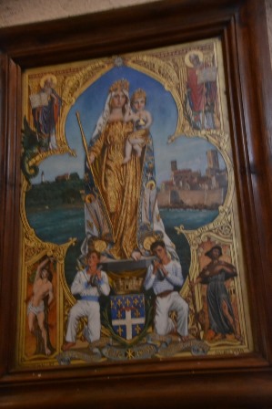 К сожалению, единственная фотография этой иконы внутри церкви получилась не в фокусе, но ее надо привести, чтобы не осталось сомнений: это действительно церковь моряков!