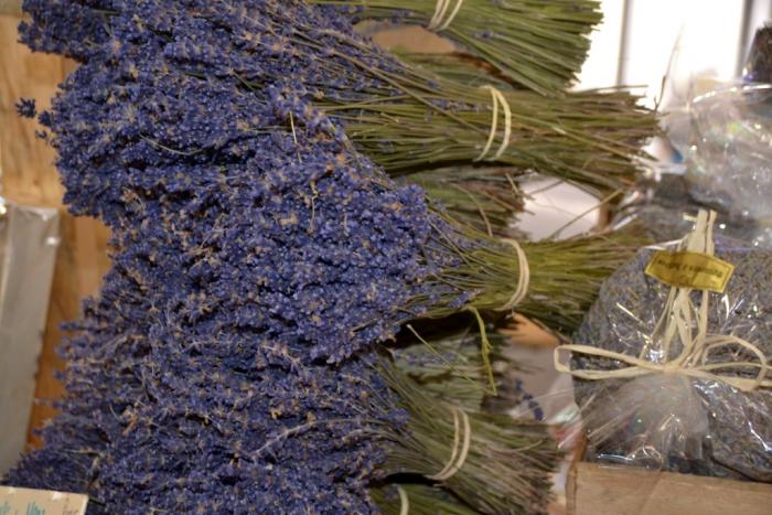 Деликатесные колбасы, прессованная кабанятина, сыры, ряды оливок, лоханки тапинада (это такая паста из черных оливок, анчоусов, чеснока и оливкового масла – мажется на хлеб и идет как возбуждающая аппетит закуска), прозрачные засахаренные фрукты из Апта, охапки лаванды…
