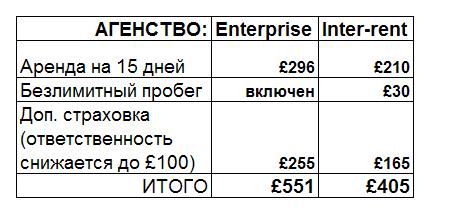 Знакомый англичанин Майк порекомендовал компанию Enterprise, которой пользуется его фирма. Они предлагали нам Ford Fiesta с безлимитным пробегом. Но я почти случайно наткнулся в сети на контору под названием , обещавшую дать нам Hyundai i20 «или аналогичную» за существенно меньшие деньги. Правда, за безлимитный пробег нужно было доплачивать. Но в целом, все равно дешевле получалось.