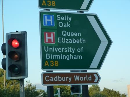 В 13:40 мы покидаем паркинг и, объехав вокруг городской стены, снова возвращаемся на магистраль. Кроме пробки перед выездом на М5, в которой мы одолели 8 миль за 40 минут, дорога ничем не запомнилась. А нет, не прав! По дороге в Бирмингем мы углядели тот самый замечательный дорожный знак, о котором я упоминал еще в введении:
