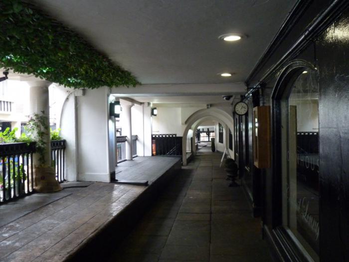 Снова идти по тем же улицам — глупо. Лучше прогуляемся по знаменитым честерским галереям, которые тянутся вдоль четырех главных улиц на уровне цокольного-второго-третьего этажей. Здесь их называют Rows — в моем вольном переводе: Ряды. Каким-то образом историки привязывают их возникновение к осыпающимся римским и средневековым стенам города, к которым лепились (друг на друга) торговые лавки.