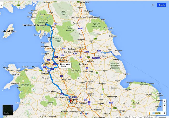 Свернув палатку и распрощавшись с фермой Хоксхеда, где мы провели предыдущие две ночи, команда Козыревых в 9:15 тронулась в путь. Оставив позади осмотренные накануне идиллические пейзажи Озерного края, наш автомобильчик вскоре выкатился на трассу и понесся на юг. Сегодня нам предстояло ночевать в гостях у семьи в городе Бирмингем. Ничего интересного я от этого мегаполиса не ожидал, поэтому по дороге хотелось найти какие-нибудь достопримечательности. На Сноудонию у нас решительно не хватало времени, да и гор нам на севере хватило. Ливерпуль… как там в какой-то комедийной зарисовке: