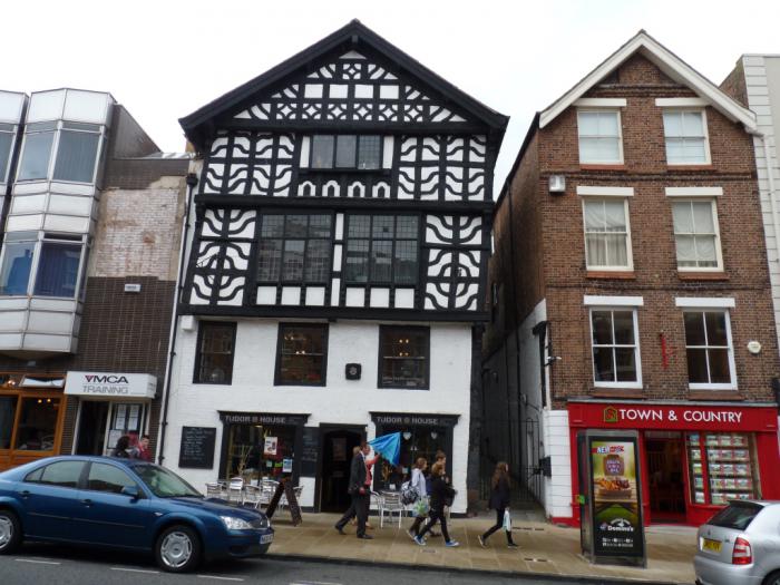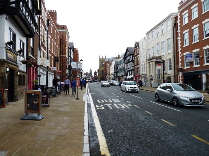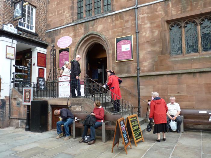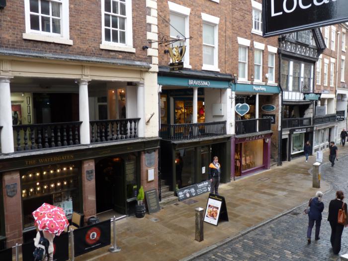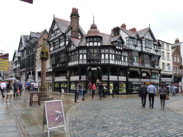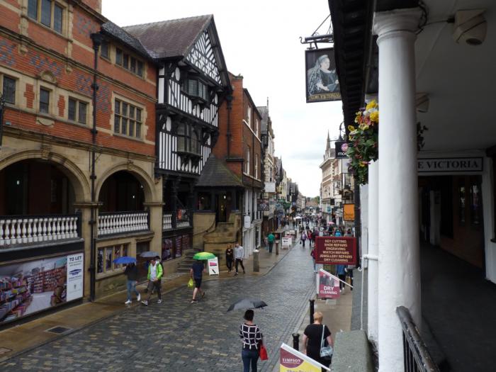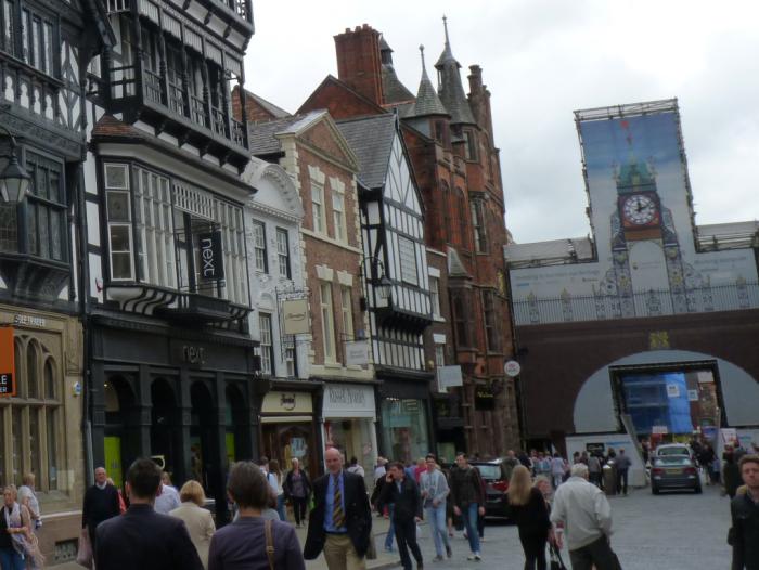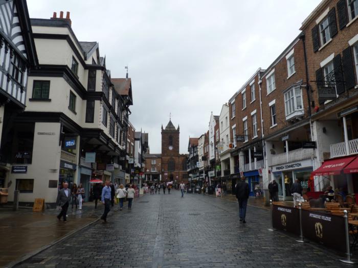 В 11:40 мы прибыли на место. Наш Vauxhall мы припарковали в подземном паркинге, что с нами случается крайне редко. Прошли через торговый комплекс, вышли на улицу и отправились искать исторический центр. Маме Честер как-то поначалу не приглянулся. На дома, стоявшие вдоль улицы, по которой мы шли, она посмотрела с недоверием и презрительно фыркнула: под старину маскируются!